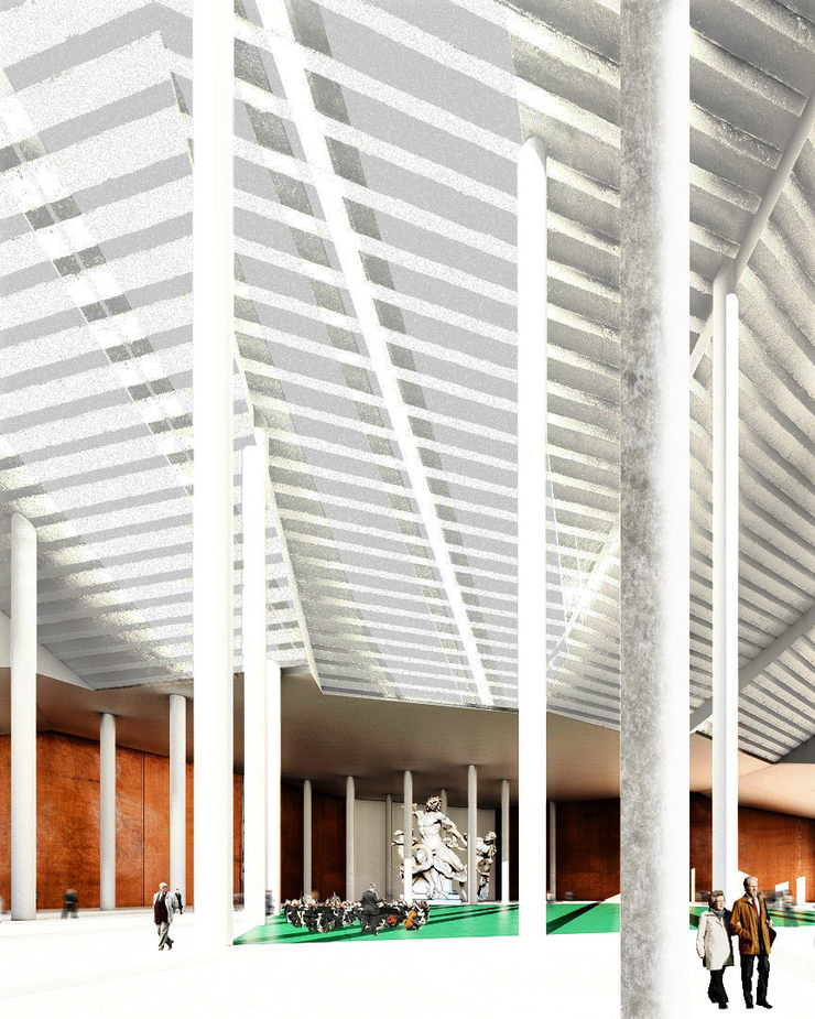 velkých sálu a využít sloupového náměstí jako scénografickou