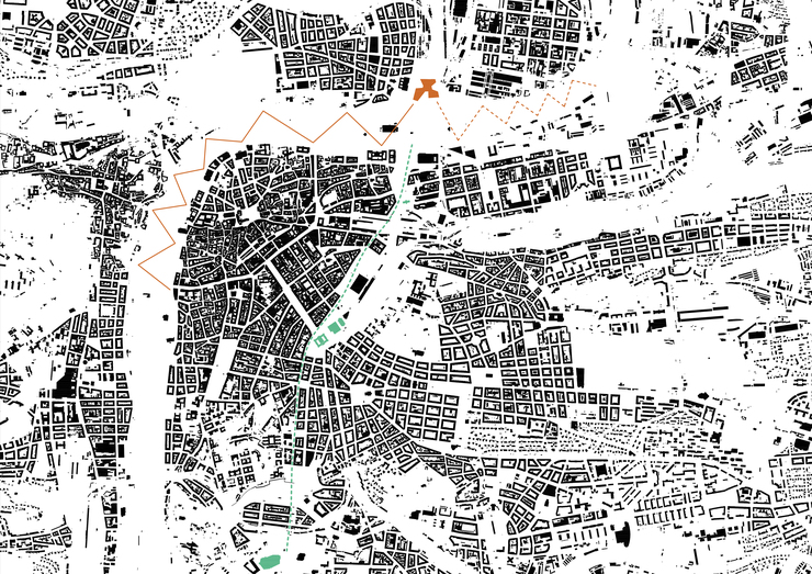 Dalším z veřejných prostorů je bazilika tvořící pomyslné